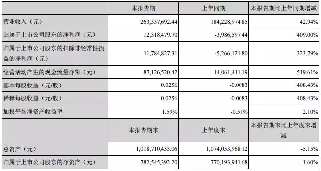 海欣食品公布2018財年第1季度財報,財報顯示,報告期內(nèi),公司營業(yè)收入2.63億元;歸屬上市股東的凈利潤為1.23千萬元;公司總資產(chǎn)10.19億元;公司凈資產(chǎn)7.83億元;每股收益0.03元。