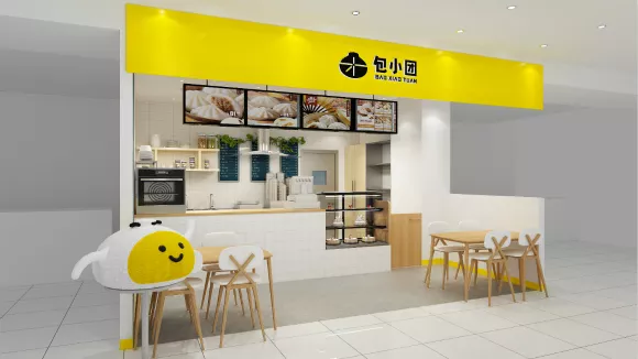 迎合年輕人的喜好,改變了品牌調(diào)性的“包小團(tuán)”,打出了“包子界最有根兒的潮牌”的口號(hào)。從漫畫風(fēng)格的LOGO、到以黃、白兩色為主的店面設(shè)計(jì),都在營造小清新的用餐氛圍。