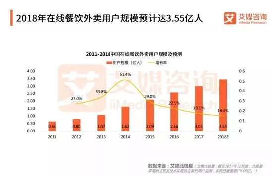 2018年在線餐飲外賣用戶規(guī)模預(yù)計達(dá)3.55億人
