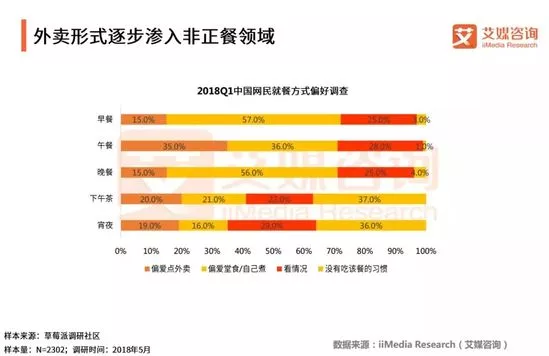 艾媒咨詢分析師認(rèn)為,隨著人們就餐習(xí)慣的改變,以外賣形式解決下午茶、宵夜的人數(shù)日益增長,外賣行業(yè)在下午茶、宵夜等非正餐業(yè)務(wù)的上升空間大,需要拓展多元化業(yè)務(wù)。