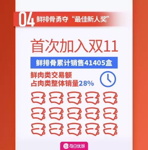 其中,原產(chǎn)地直采的鮮活陽澄湖大閘蟹狂售六萬多只,首次加入雙11的鮮排骨累計銷售超過4萬盒。
