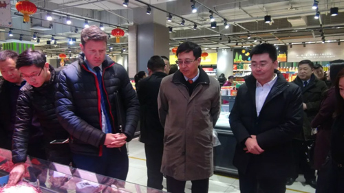 啟動儀式之后,樊偉龍陪同劉孟澤、韓振岐等領(lǐng)導(dǎo),共同參觀了城鄉(xiāng)超市中澳洲冰鮮牛肉的銷售排面,來自大洋彼岸、原包原味的澳洲冰鮮牛肉吸引了大家的注意。