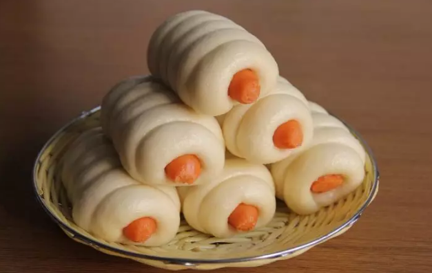 近兩年,在早點(diǎn)攤、便利店都能看到這種面點(diǎn)外面纏繞著烤腸的產(chǎn)品,速凍行業(yè)稱之為“腸見面”“香腸卷饅頭”“中式熱狗卷”“香腸堡”(本文統(tǒng)稱為“腸見面”)。