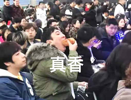 ▲國(guó)民老公風(fēng)靡全網(wǎng)的吃熱狗現(xiàn)場(chǎng)。不過這是面包加腸