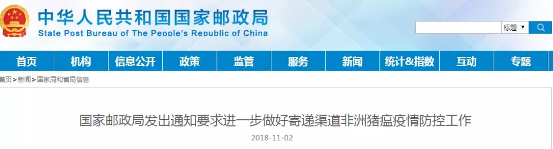 通知強(qiáng)調(diào),要按照《國家郵政局關(guān)于切實(shí)做好非洲豬瘟疫情防控工作的通知》要求,嚴(yán)格落實(shí)寄遞渠道疫情防控各項(xiàng)責(zé)任措施。要督促企業(yè)認(rèn)真執(zhí)行《禁止寄遞物品管理規(guī)定》有關(guān)要求,嚴(yán)格落實(shí)收寄驗(yàn)視、實(shí)名收寄、過機(jī)安檢等寄遞安全管理“三項(xiàng)制度”,一律不得收寄活豬和未經(jīng)檢疫、未制熟豬肉制品。
