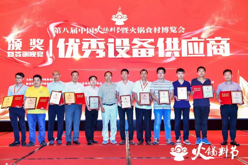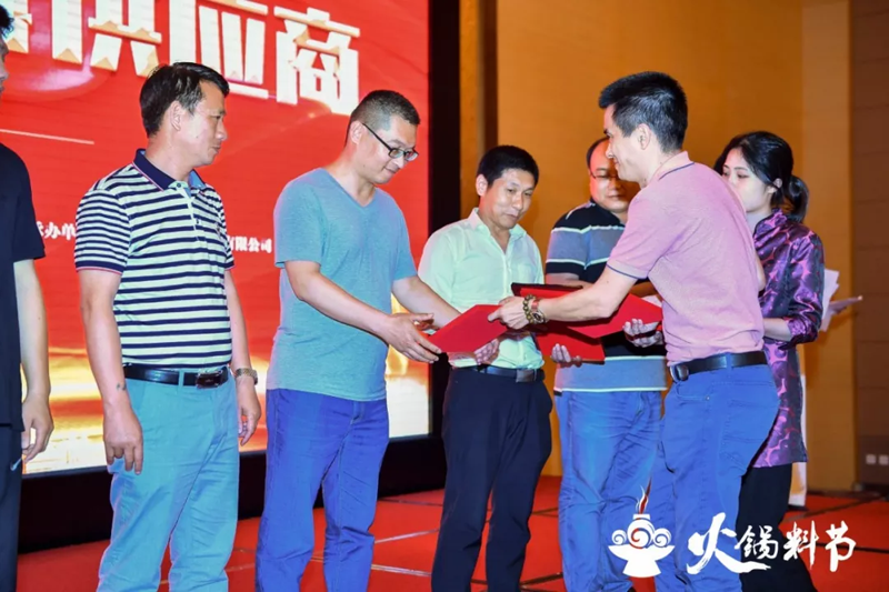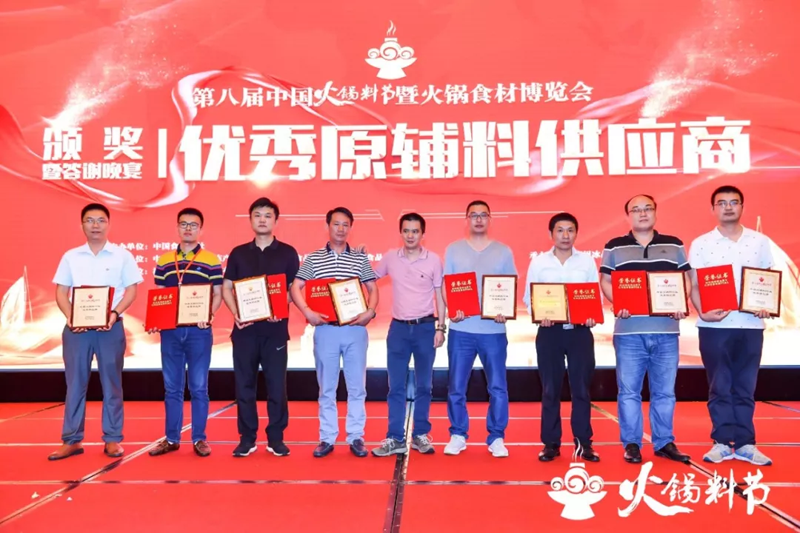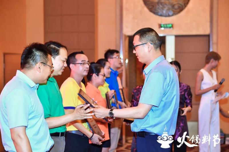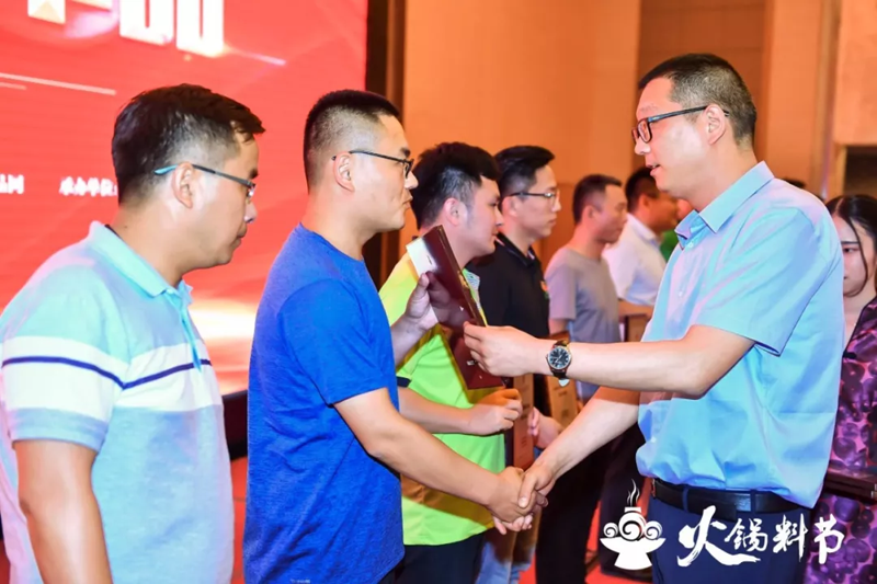 頒獎儀式在第八屆中國火鍋料節(jié)晚宴現場隆重舉行?,F場燈光璀璨,掌聲雷動,為獲獎者加冕。