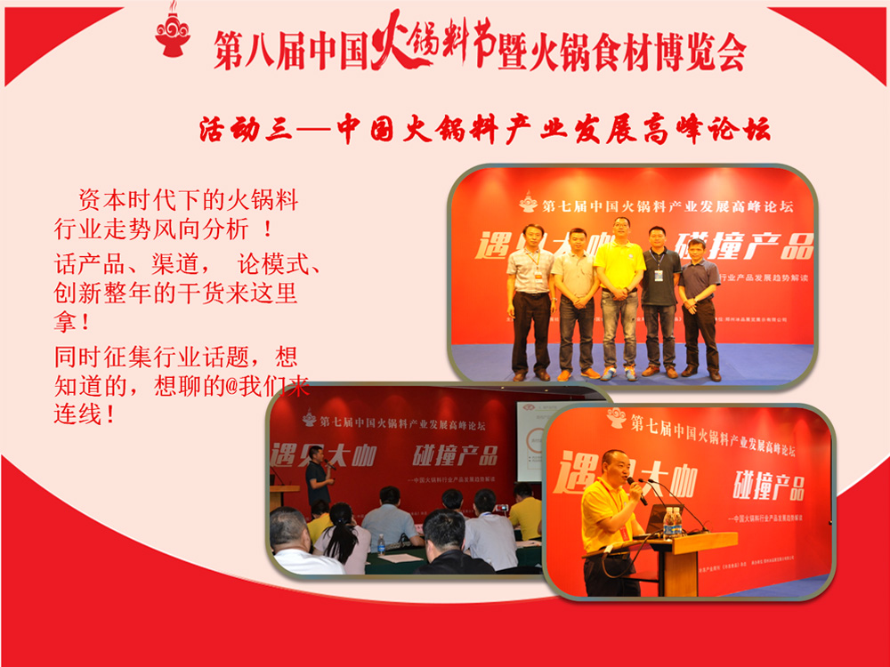 如何改變公眾消費(fèi)者對火鍋料產(chǎn)品的認(rèn)知?如何在消費(fèi)升級、需求多元化的大環(huán)境下精耕細(xì)作,多渠道經(jīng)營?如何在注重食品安全和生活品質(zhì)的前提下做好“蒸煮煎炸的跨界火鍋料產(chǎn)品”?傳統(tǒng)美食工業(yè)化設(shè)備企業(yè)又將迎來怎樣的創(chuàng)新?原輔料企業(yè)又將為產(chǎn)品升級提供怎樣的助力?資本時(shí)代下的火鍋料產(chǎn)業(yè)又將迎來怎樣的變革?新競爭時(shí)代,火鍋料食材又該迎來一個(gè)怎樣的定義?