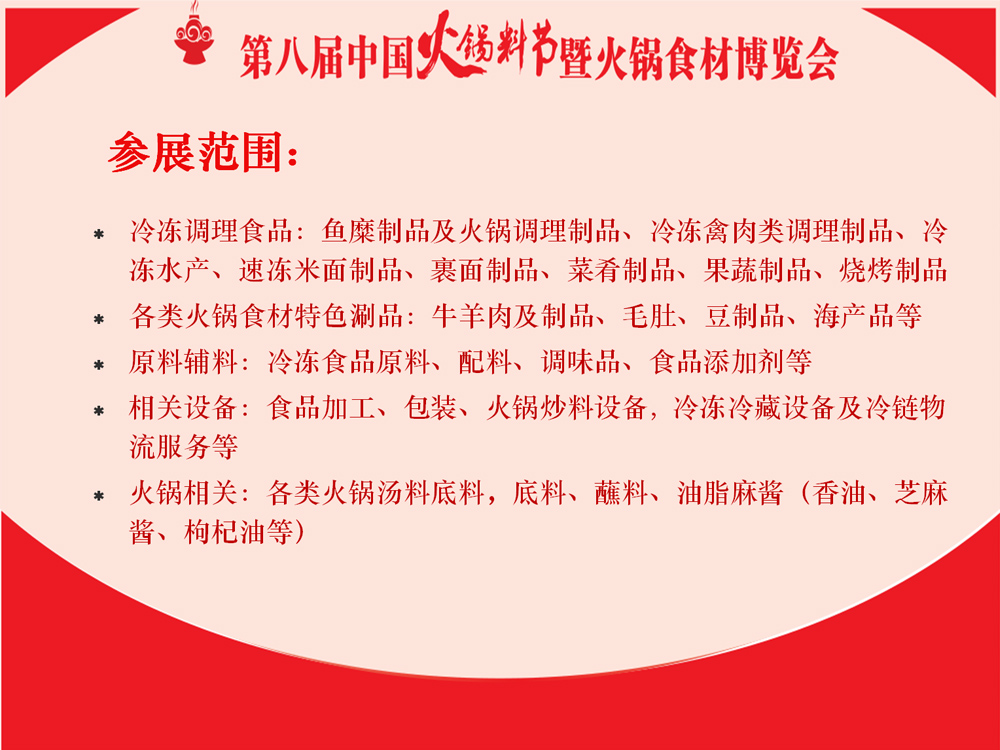 第八屆中國火鍋料節(jié),為行業(yè)引導(dǎo)新的方向,為企業(yè)尋找新的發(fā)展引擎,為產(chǎn)品尋找新的創(chuàng)意靈感,為生意尋找新的渠道機(jī)遇,相聚于此,我們一起來尋找答案!
